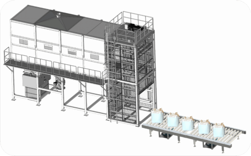 ※ 輸送位置可根據生產需要,從大袋直接輸送到料倉、反應釜、混合罐、粉碎機、稱重罐等